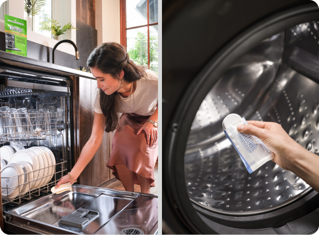 affresh® Washer cleaner penetrates, dissolves and helps remove odour-causing residue, leaving the washer clean and smelling fresh.