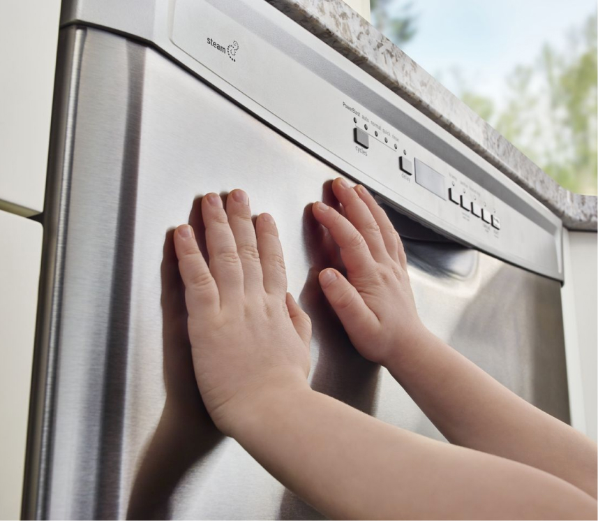 This easy-to-clean exterior keeps your dishwasher looking as good on the outside as it works on the inside — because handprints belong on your kid's art project hanging on the fridge, not on the front of your dishwasher.