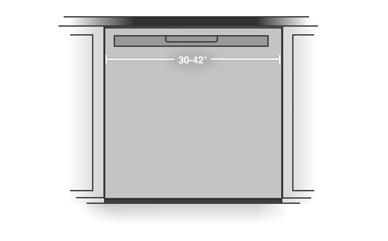 Most openings are 24'' wide, 34–36'' high and 24'' deep, which fits standard dishwasher dimensions of approximately the same size. If your desired dishwasher and current opening dimensions aren’t matching up, keep in mind: