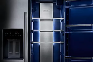36-inch Wide Counter-Depth Side-by-Side Refrigerator with Arctic Blue Interior - 20.8 Cu. Ft.This 36 inch side-by-side refrigerator has ultimate cooling performance. The PowerCold® feature takes your groceries from room temp to chilly quickly, and the EvenAir Cooling System keeps everything consistently cold front to back. The LED light tower lets you see corner to corner on every shelf, all against a striking Arctic Blue Interior. Plus, optimize your kitchen space with styling that fits virtually flush with the countertop.