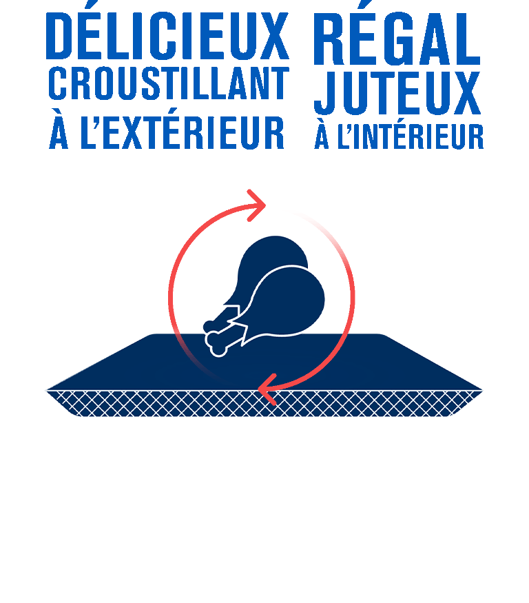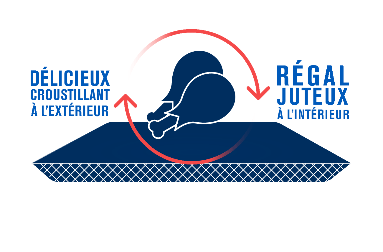 COMMENT FONCTIONNE LA FRITURE À AIR : L'AIR CHAUD CIRCULE AUTOUR DE VOS ALIMENTS POUR LES RENDRE CROUSTILLANTS.