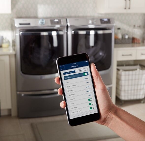 INSTRUCTIONS ÉTAPE PAR ÉTAPE POUR CONNECTER VOTRE LAVEUSE ET SÉCHEUSE INTELLIGENTES MAYTAG® À CHARGEMENT FRONTAL